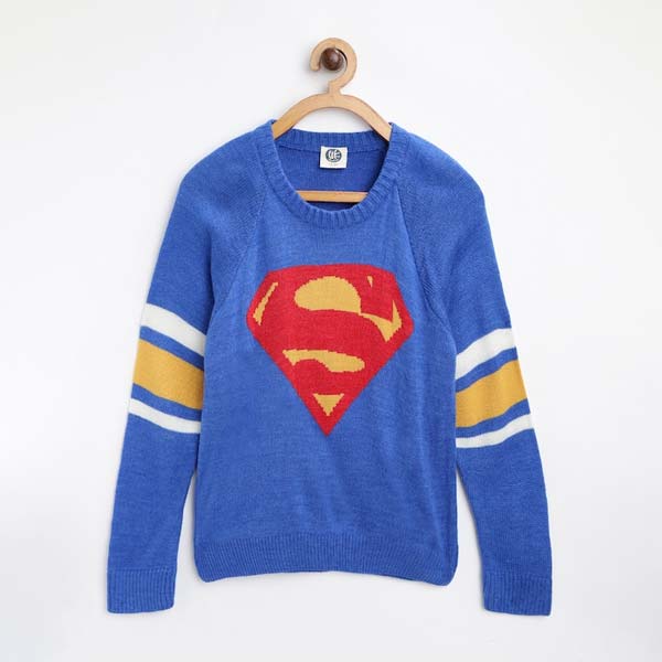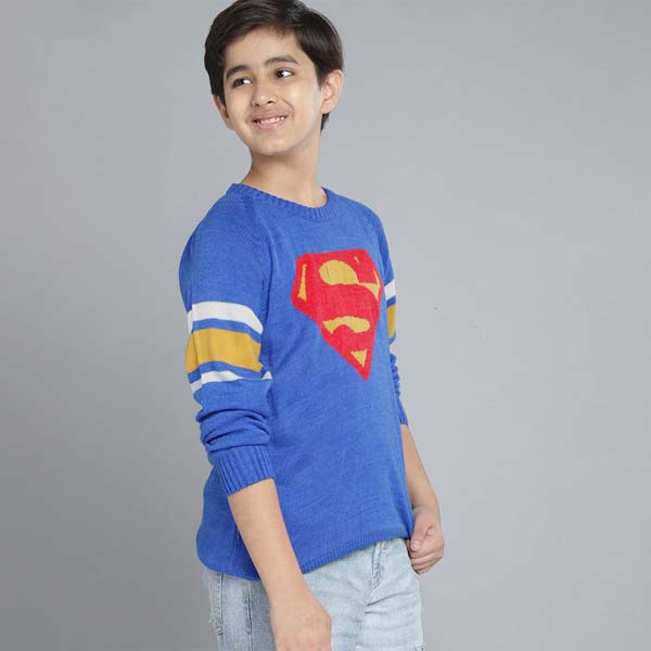 Boys Blue & Red Superman Patterned Acrylic Sweater
