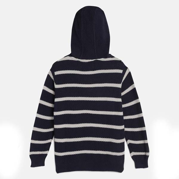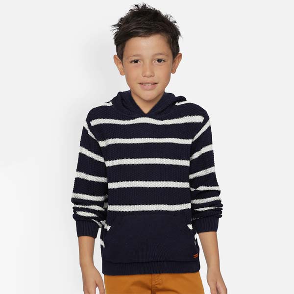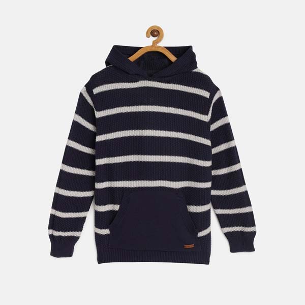 Boys Navy Blue & Grey Striped Pullover Sweater