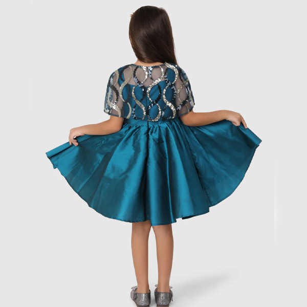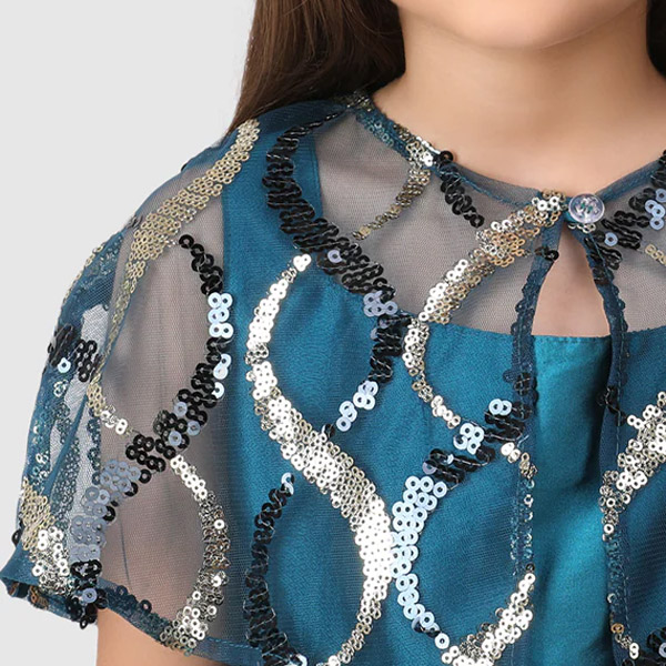 Girls Round Neck Sequined Layered Frock