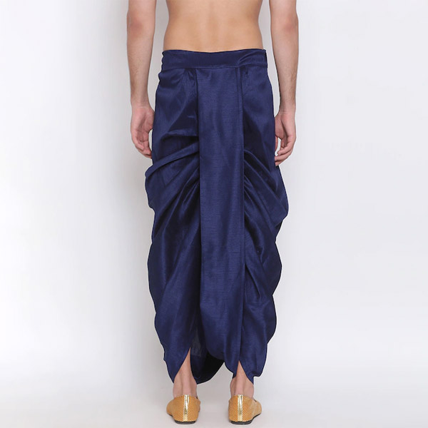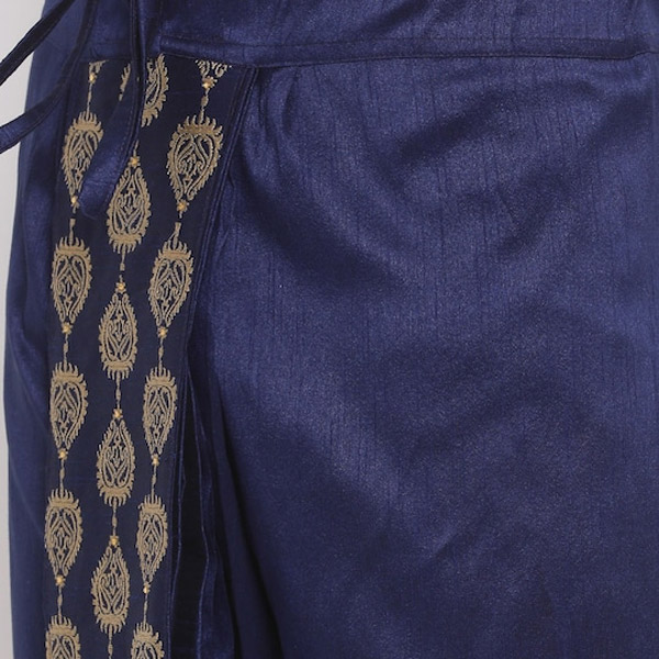 • Navy blue dhoti pants with intricate embroidery detailing, has an elasticated waistband with slip-on closure
