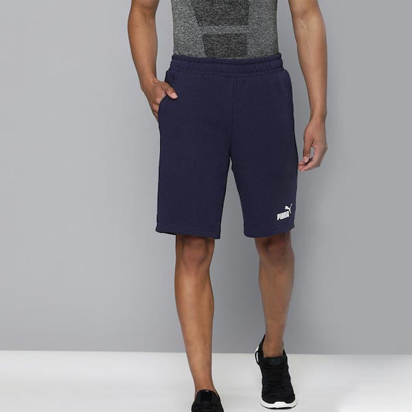 Men Navy Blue Solid Regular Fit ESS 10" Sports Shorts