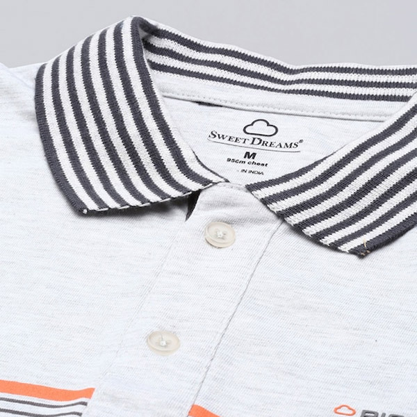 Men Off White & Grey Striped Night suit