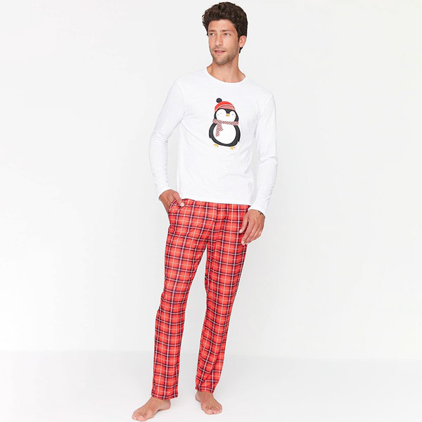 Men White & Red Printed Pure Cotton Night suit