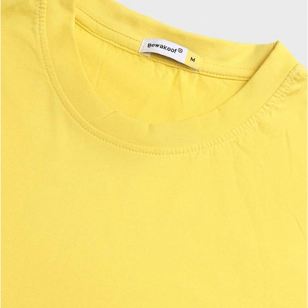 Men Yellow Typography Printed Drop-Shoulder Sleeves Loose Cotton T-shirt
