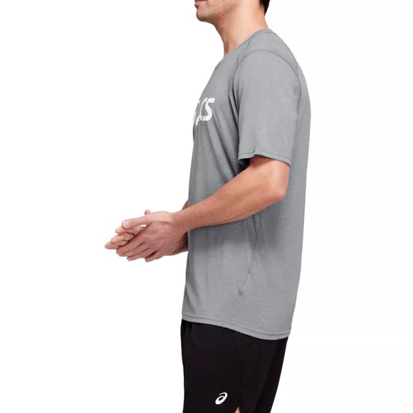 The TRIBLEND TRAINING SHORT SLEEVE TOP is made from a tri-blend knit fabric with a stretch component to ensure flexibility when working out. The tee also features an ASICS logo across the front.