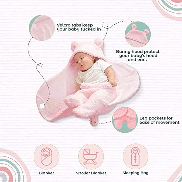 - Feel: This super soft blanket or wrapper is made from fleece which is gentle on the baby’s skin, while keeping the baby warm it ensures softness, colorfastness, durability and possesses anti-allergic properties.