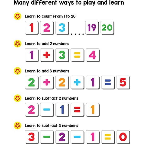 How to play? Pick up the number magnets and place them on the magnetic board. kids can improve their arithmatic skills. the magnetic numbers are thick and made of durable materials. This enables the kids to easily pick up, pinch and grasp pieces and move them around. This leads to fine motor skills development and hand-eye coordination. When kids do number sequencing or do simple addition and subtraction, it greatly improves their problem solving skills