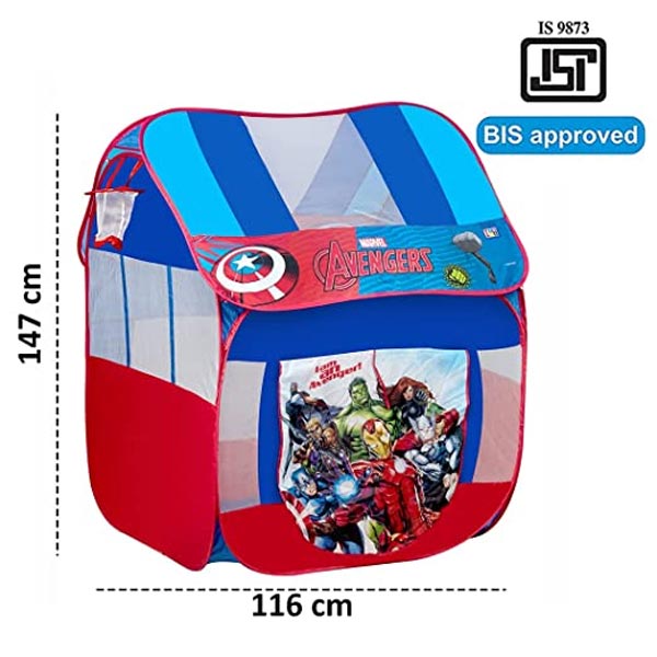 Wembley Avengers Foldable Kids Play Tent House for Kids 5 Years and Above Girls Boys Indoor Outdoor Big Pop-Up Hut Theme with Basket Ball Hoop Toys PV