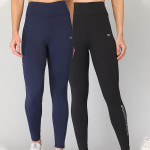 Women Black & Blue Solid High Waist Gym Tights Pack Of 2